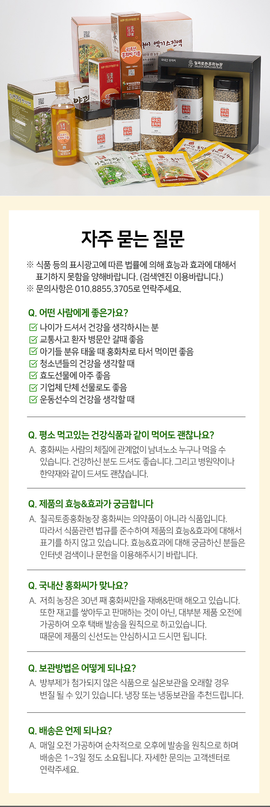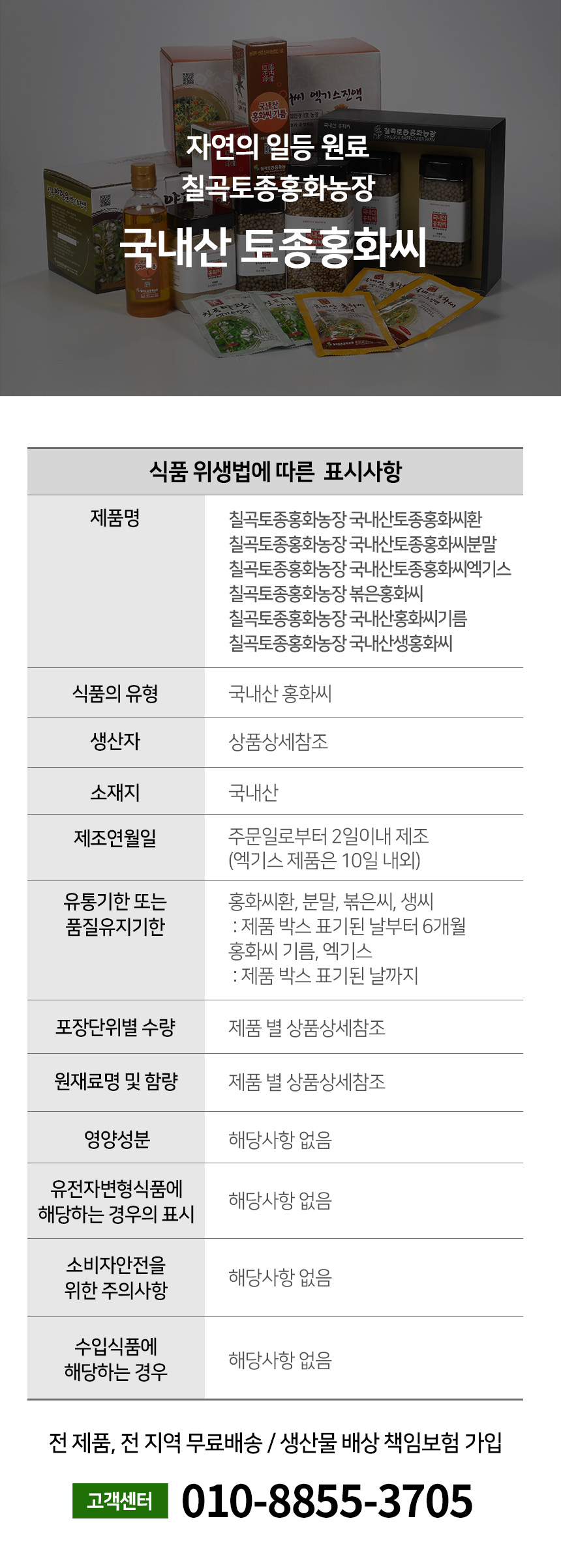 모든 주문 상품은 무료 배송됩니다.(칠곡홍화씨농장에서 지불하고 발송됩니다.)